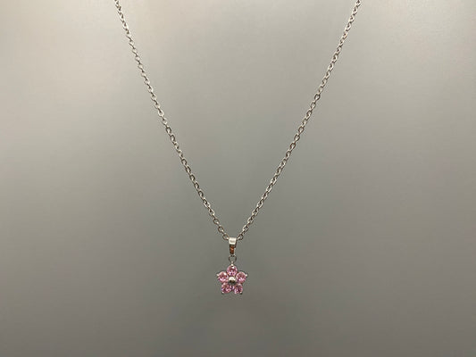 Blossom Silver Pendant Necklace Pink Zirconia